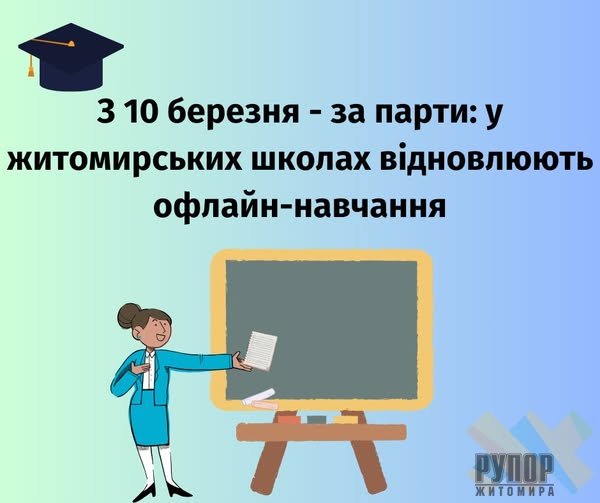 З понеділка, 10 березня, школярі повертаються за парти: у Житомирі відновлюють офлайн-навчання