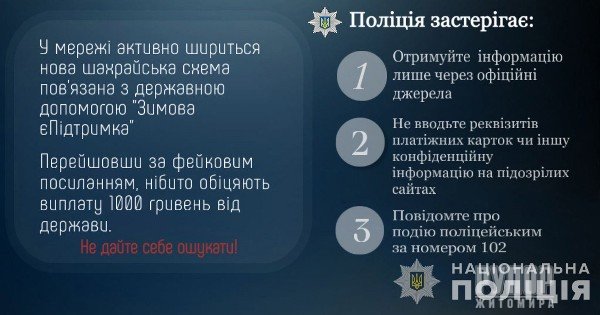 Поліція Житомирщини застерігає щодо нових схем обману під виглядом державної допомоги