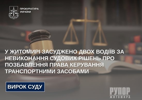 У Житомирі засуджено двох водіїв за невиконання судових ...