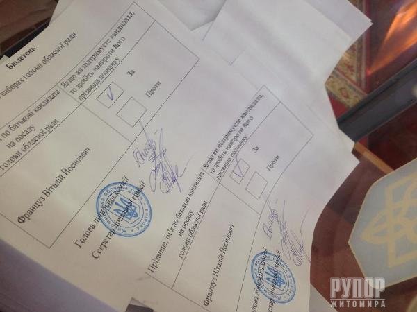 Сьогодні, 21 лютого під час позачергової сесії Житомирської обласної ради депутати обирали нового голову обласної ради. Представника фракції "Батьківщина" в обласній раді, керівника Житомирської обласної партійної організації "ВО"Батьківщина" Віталія Француза підтримали 70 з 75 присутніх депутатів. Йосип Запаловський, котрий до цього перебував в лавах Партії регіонів та очолював область, сьогодні повідомив про вихід з партії та склав повноваження голови обласної ради. Нагадаємо, що Віталій Француз був головою облради з 1 лютого 2008 року до 17 листопада 2010.