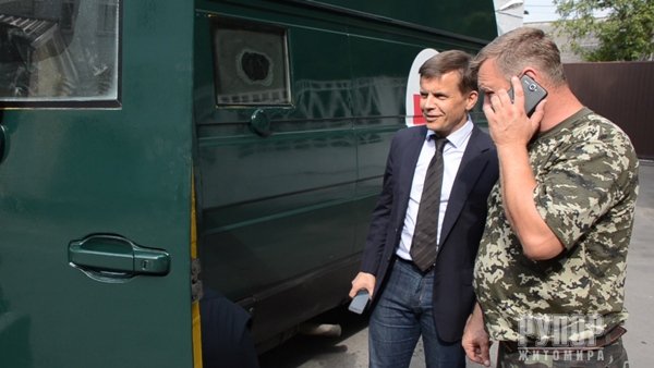 Загрузити автівку благодійною допомогою приїхав генеральний директор Житомирського картонного комбінату Олег Карпека. Сам, за власний кошт придбав військовим тепловізор, який десантники отримають по приїзду броньовика.