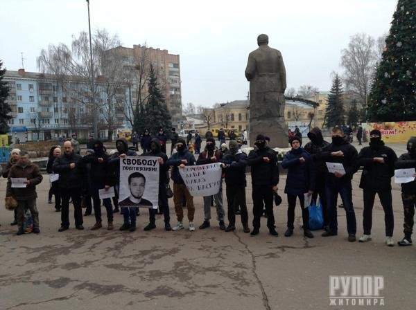 У Житомирі вшанували пам'ять загиблих у трагедії під Волновахою. Під стінами Житомирської облдержадміністрації зібралися представники "Чорного корпусу", які тримали у руках аркуші паперу "Я Волноваха", повідомляє відома житомирська журналіст Олена Галагуза на своїй сторінці у Фейсбук. Також підходили перехожі, які підтримали ідею маршу миру у всій Україні. Один з організаторів заходу Едуард Ляшевський зауважив: "Ціль нашої акції – визначити джерело того, що відбувається. Ми ж розуміємо, що наразі жертв ставатиме дедалі більше. Мабуть, у нашого Головнокомандувача, а також Гаранта наших прав і свобод переслідують інші цілі: армія стоїть, а люди гинуть. Марш миру – це, звісно, дуже добре, це нас об’єднує. Але мета нашого зібрання – донести до Президента меседж, щоб він дав наказ про широкомасштабний наступ. Щоб запобігти жертвам, які ми маємо щодня". Присутнім роздали портрети Порошенка, які тримали догори дригом, хлопці розірвали їх на клаптики. Ветеран-афганець Василь Давидов, який прийшов на захід, сказав: "Я не рватиму портрет президента, бо він для мене ще не набрав такої державної ваги. Але потім будуть рвати портрети, а по-живому. Пацани, за вами майбутнє!"