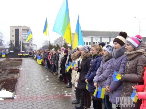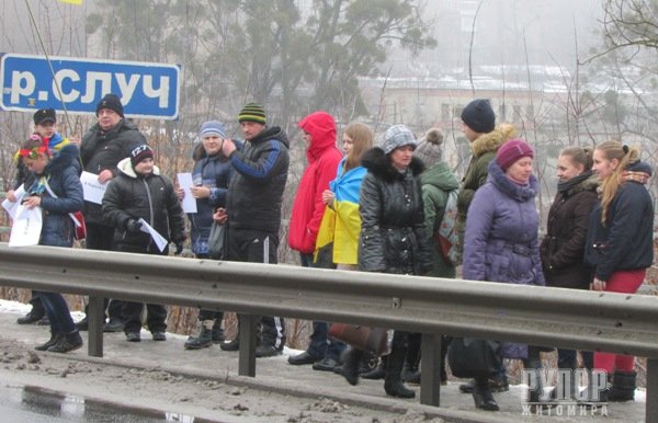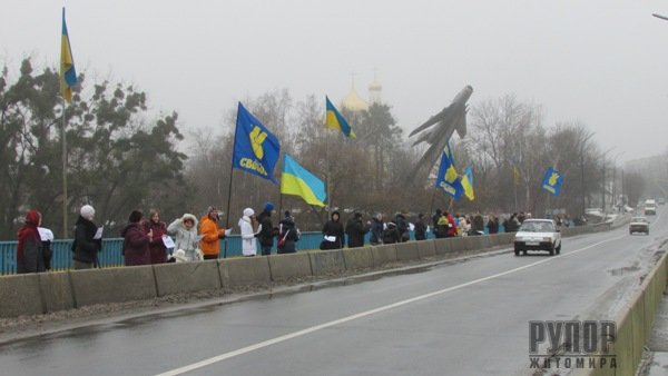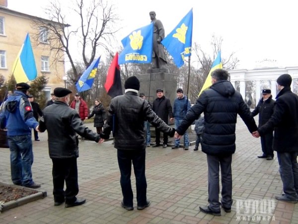 У Новограді-Волинському свободівці на Житомирському мості утворили живий "ланцюг єдности", яким активісти об'єднали правий і лівий береги річки Случ. "Сьогодні ВО "Свобода" дійсно з'єднала два береги Случа. Цей "ланцюг єднання" став для нас вже традиційним. І ми будемо продовжувати цю справу, бо в Новограді-Волинському більше немає кому відстоювати українські національні інтереси", – наголосив голова Новоград-Волинської "Свободи" Олександр Захарчук.