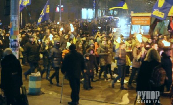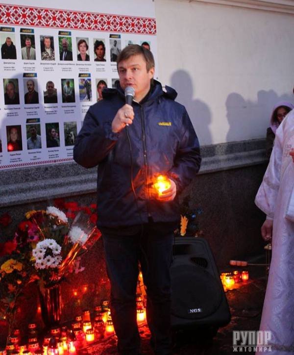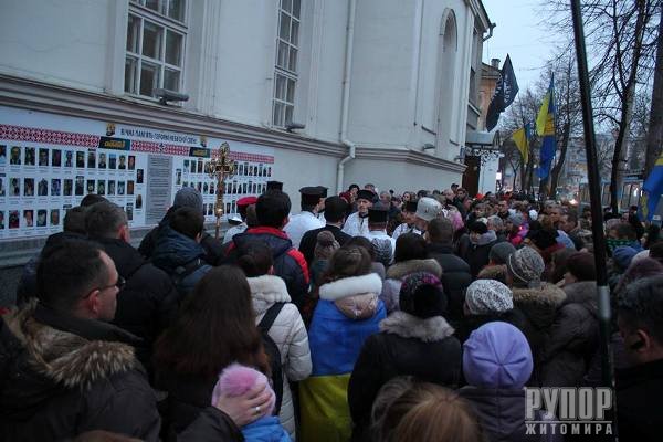 20 лютого 2015 року смолоскипним маршем та панахидою житомирські активісти вшанували пам'ять загиблих Героїв Небесної сотні. Захід відбувся з ініціятиви обласної організації ВО "Свобода". Біля Свято-Михайлівського катедрального собору отець Богдан провів панахиду за загиблими українцями: "Ми - українці – добрий народ. Але коли ми бачимо кривду, то згуртовуємось і показуємо, на що ми здатні. Я вірю, що ми переможемо. З нами Бог і ніхто проти нас". "Саме тоді і зараз ці хлопці демонструють всьому світу, що Україна була і буде незалежною державою. Сьогодні нашим моральним обов'язком є вшанувати тих героїв, які загинули під час Революції гідности, усіх, хто поліг заради Української держави, заради того, щоби громадянам жилося краще. Цим маршем ми вчергове хочемо нагадати людям, що потрібно щодня змінювати свою державу на краще власними вчинками і діями", - зауважив голова обласної організації ВО "Свобода", активний учасник Революції гідности Сидір Кізін. Громадяни поклали квіти та запалили свічки пам'яти біля дошок Героїв Небесної Сотні. Прес-служба Житомирської обласної організації ВО «Свобода»