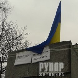 Зважаючи на численні звернення громадян до депутата Богунської райради Михайла Сліпченка щодо стану погруддя на перехресті вулиць Ольжича та Перемоги, свободівець неодноразово звертався до міської ради з пропозицією демонтувати цей об’єкт. На що отримував відповідь: «Не на часі».