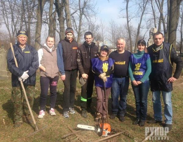 23 березня 2015 року за ініціятивою місцевих свободівці у Радомишлі упорядкували старовинне польське кладовище. Свободівці разом з членами місцевого товариства "Просвіта" та юними спортсменами-альпіністами на чолі з тренером Антоном Ніколаєвим прибрали величезний смітник, який утворився навколо кладовища, листя, повирізували зарості бузку, відновили декілька розбитих вандалами пам'ятників. "Ми запропонували польській общині упорядкувати кладовище. Правда, не встигли прибрати усю територію, тому обов'язково вийдемо знову на прибирання, і дуже сподіваємося, що до нас приєднаються ще члени общини і мешканці Радомишля. Саме зараз йдуть Великодні свята і ми просто зобов'язані виконати свій людський борг перед тими, кого вже з нами поруч немає. Це треба не стільки мертвим, скільки нам живим", - зазначила свободівка Наталія Черняєва. Свободівці кажуть, що прибравши кладовище візьмуться за инші засмічені частини міста. Прес-служба Житомирської обласної організації ВО «Свобода»