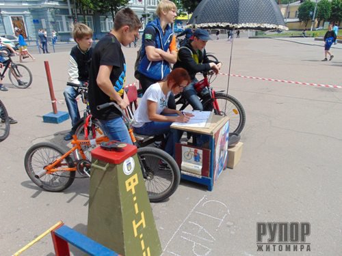 Житомирські свободівці 30 травня 2015 року разом із громадою взяли участь у відзначенні "Велодня". Кількасот велосипедистів зібралися на Соборному майдані, вишикувалися колоною й рушили вулицями міста. "Останнім часом познайомилась із багатьма чудовими велосипедистами, тож замислились над тим, що треба вже й мені освоювати цей вид транспорту. Насправді колись у дитинстві я трішки каталась на велосипеді, але чомусь в пам'яті залишились тільки неодноразово розбиті коліна і вивернуте кермо. Тепер можу виїхати і за межі міста. Перша моя подорож була на День героїв до села Кодня", – розповіла заступник голови Житомирської міської організації ВО "Свобода" Юлія Шевчук. Після велопараду на майдані Корольова, розташувавшись у формі велосипеда, учасники акції зробили групове фото на пам'ять. Прес-служба Житомирської обласної організації ВО «Свобода»
