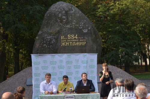 Сьогодні у Житомирі відбулася конференція партії УКРОП із висунення кандидатів у депутати. Цікаво, що конференція Організації проходила на Замковій горі поблизу пам’ятного знаку на честь заснування м. Житомира. Очільник обласної організації партії УКРОП Тетяна Пашкевич не лише очолила список до Житомирської міської ради, але й стала кандидатом на посаду Житомирського міського голови. Після завершення відбулася спільна прес-конференція за участю першого номеру в списку до Житомирської міської ради та кандидата на посаду Житомирського міського голови — Тетяни Пашкевич та першого номеру в списку до Житомирської обласної ради — Рустама Раупова.
