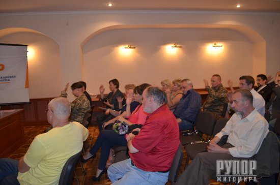 Попередній список кандидатів у депутати представила делегатам зборів голова Житомирської міської організації політичної партії Республіканська платформа Ніна Рябенко. Вона ж і очолить виборчий список.