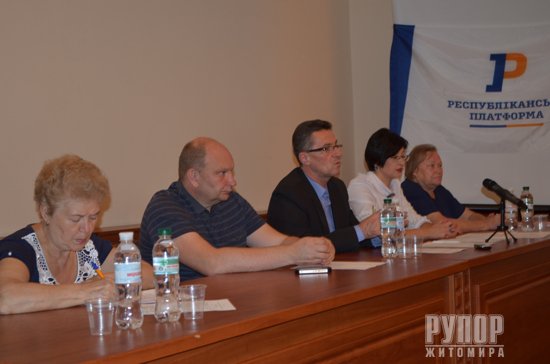 24 вересня відбулися збори Житомирської міської організації політичної партії Республіканська платформа. Попередній список кандидатів у депутати представила делегатам зборів голова Житомирської міської організації політичної партії Республіканська платформа Ніна Рябенко, яка і очолить виборчий список.