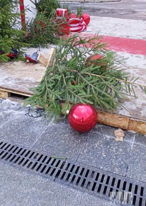 Святкову фотозону на Михайлівській знов понівечили. Це друга спроба інсталяції. Першу розтрощили у вечір відкриття ялинки.