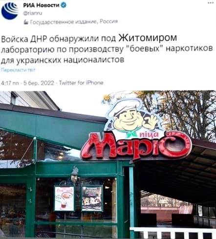 Чергові російські фейкомети виявили в піццеріях Житомира лабораторії з «бойовими» наркотиками для націоналістів