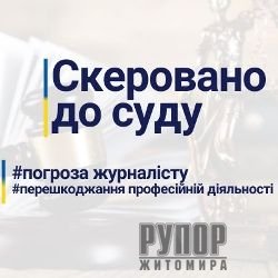 Прокурори Житомирської обласної прокуратури, після проведення необхідних слідчих дій та завершення призначених експертиз, скерували до суду обвинувальний акт стосовно місцевого жителя за фактом погрози насильством щодо журналіста під час виконання ним законної професійної діяльності та умисного перешкоджання здійсненню журналістом законної професійної діяльності (ч. 1 ст. 345-1, ч. 1 ст. 171 КК України).
