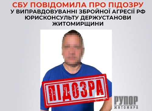 Виправдовування окупації зс рф частини території України – на Житомирщині СБУ повідомила про підозру юрисконсульту регіональної держустанови