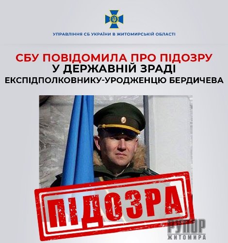 https://ruporzt.com.ua/, на Житомирщині СБУ повідомила про підозру у державній зраді 45-річному бердичівлянину за добровільний перехід на бік ворога в період збройного конфлікту.