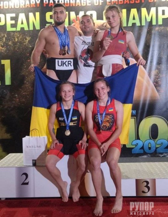 З 01 по 03 вересня в Польському місті Кротошин відбувся чемпіонат Європи з боротьби сумо, в якому взяли участь понад 300 спортсменів з 12 країн. Про це повідомляє Управління національно-патріотичного виховання, молоді та спорту Житомирської ОВА. Серед учасників чемпіонату – й наша землячка з міста Коростень Ірина Дорошенко, вихованка тренера Владислава Білоусова. Борчиня тричі стала чемпіонкою Європи, виступаючи у ваговій категорії до 50 кг. Отож, Ірина здобула перемогу у таких категоріях — U-21, U-23 та серед дорослих, виконавши норматив майстра спорту України міжнародного класу. Житомирська ОВА вітає триразову чемпіонку та її тренера з перемогою та бажає підкорення нових спортивних вершин.