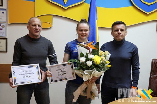 Сертифікати на грошові винагороди від Житомирської громади отримали сьогодні чемпіонка Європи з вільної боротьби Ірина Бондар та її тренер Михайло Христософ. Ірина Бондар – уродженка Звягеля і вихованка Житомирської обласної школи вищої спортивної майстерності з вільної боротьби. Останні роки житомирська борчиня показує високі результати на міжнародних змаганнях. Минулоріч вона стала бронзовою призеркою чемпіонату світу, а у 2023 році - чемпіонкою Європи серед жінок U-23 в Бухаресті. Зараз Ірина готується до турніру в Румунії та чемпіонату Європи U-20, що пройде в Іспанії. Також членкиня збірної України має високі шанси здобути ліцензію на Олімпійські ігри - 2024 «10 травня у Львові пройде чемпіонат України з вільної боротьби серед дорослих у ваговій категорії 62 кг. Якщо отримаю першість на чемпіонаті України, змагатимуся у світовому чемпіонаті», - розповідає спортсменка. «У березні виконком затвердив рішення порядок призначення грошових винагород спортсменам і тренерам, які є переможцями і призерами міжнародних офіційних змагань. З бюджету громади Ірина отримала 20 тис. грн Її тренер Михайло Христософ - 10 тис. грн, тобто 50% від суми винагороди спортсменки», - повідомляють в управлінні молоді та спорту міської ради.