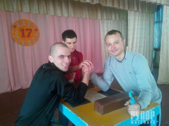 В рамках відзначення Дня студента у Житомирському державному технологічному університеті влаштували змагання з армреслінгу, участь в яких взяли спортсмени з різних курсів і факультетів вузу.