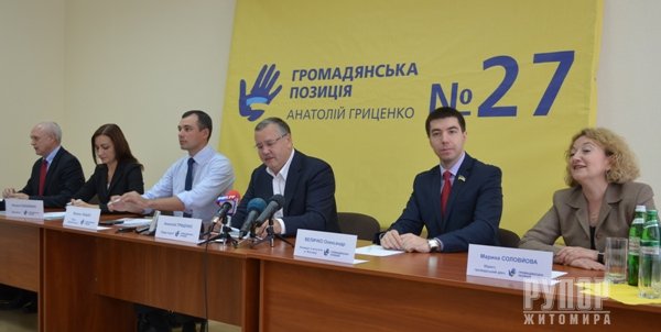 лідер партії «Громадянська позиція» Анатолій Гриценко, який під час зустрічі з журналістами, представив свою команду, з якою йде на вибори.
