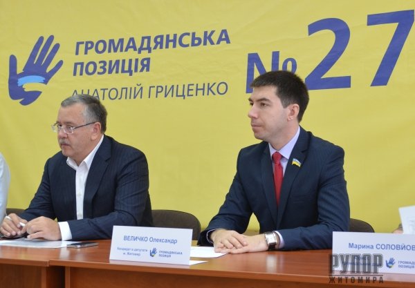 кандидат від партії «Громадянська позиція» по 62 округу Олександр Величко вважає, що житомирянам вже набридло обирати бізнесменів, які не виконують свої обіцянки та з’являються перед своїми виборцями лише перед самими виборами.