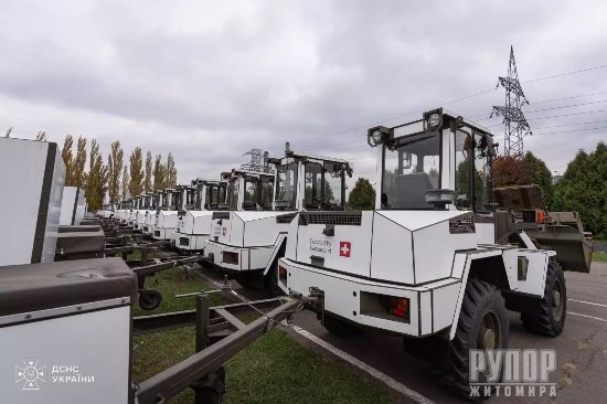 Українські рятувальники отримали від Уряду Швейцарії навантажувачі та пожежні мотопомпи