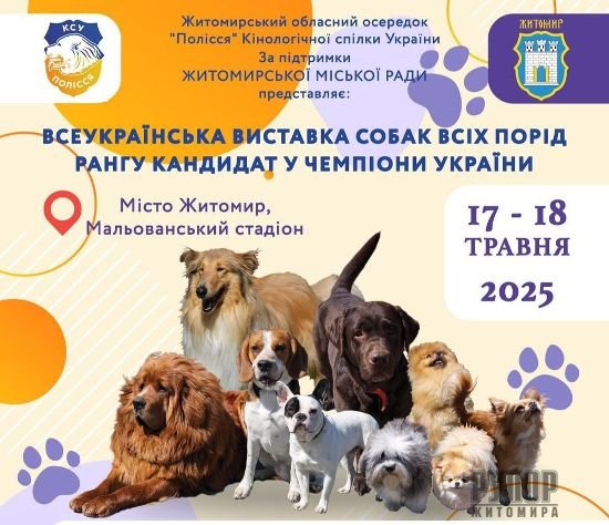 Вперше в Житомирі пройде Всеукраїнська виставка собак всіх порід рангу Кандидат у Чемпіони України