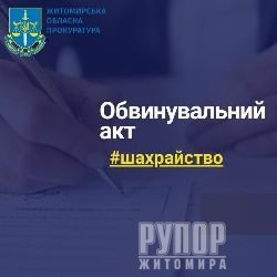 Прокурор Житомирської обласної прокуратури скерував до суду обвинувальний акт стосовно злочинного угруповання за фактом заволодіння чужим майном (шахрайство), вчиненого повторно, у великих розмірах, що завдало значної шкоди потерпілим (ч. ч. 3, 4, 5 ст. 190 КК України).