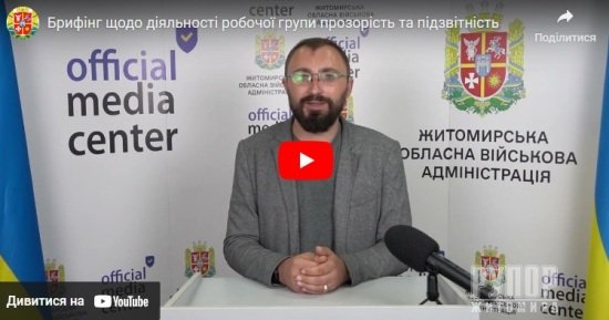 На майданчику медіацентру Житомирської ОВА відбувся брифінг щодо діяльності робочої групи “Прозорість та підзвітність” на Житомирщині