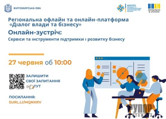 27 червня о 10:00 у рамках проєкту «Діалог влади та бізнесу» відбудеться чергове засідання на тему: «Сервіси та інструменти підтримки і розвитку бізнесу».