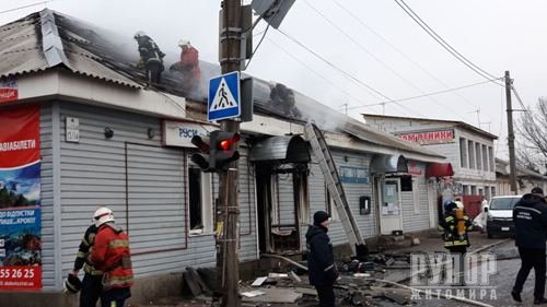 В центрі Житомира вщент згорів магазин з продажу текстильних товарів