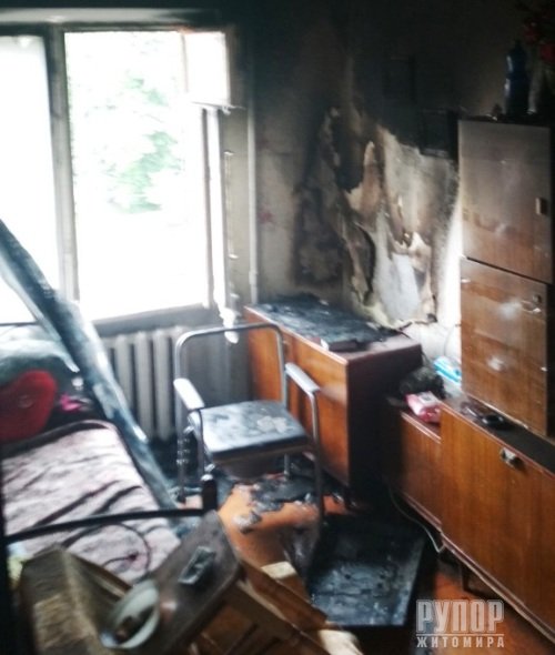 2 серпня о 14:17 до Служби порятунку «101» м. Житомир надійшло повідомлення від мешканців п’ятиповерхівки по вул. В. Бердичівській про запах диму в під’їзді. За вказаною адресою виїхали два відділення вогнеборців 2-ї Державної пожежно-рятувальної частини та спеціальна пожежна техніка - автодрабина. З’ясувалося, що пожежа сталася у квартирі на 4-му поверсі, літня господарка не могла самостійно пересуватися та відчинити двері. По 30-метрові автодрабині через відкрите вікно балкону ланка газодимозахисної служби в складі 3-х чоловік потрапили до квартири, застосовуючи апарати для захисту органів зору та дихання. Всередині помешкання спостерігалося задимлення. За попередніми даними, сталося коротке замкненні і зайнявся телевізор. Тут же у кімнаті, в кріслі, вогнеборці виявили напівпритомну 77-річну власницю помешкання. Бійці ДСНС винесли її на свіже повітря, де на неї вже чекали медики. Жінку з отруєнням продуктами горіння госпіталізували до опікового відділення обласної лікарні О 14:42 вогнеборці локалізували пожежу, а о 14:49 ліквідували. Вони також не допустили поширення горіння на інші кімнати. Вогнем знищено телевізор та домашні речі на площі 4 кв.м. До ліквідації надзвичайної події залучалося 9 чоловік особового складу та 3 одиниці техніки. Остаточна причина пожежі наразі встановлюється.