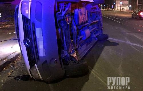 У Житомирі зранку на перехресті вулиць Грушевського та Покровської під час ДТП перекинувся автомобіль