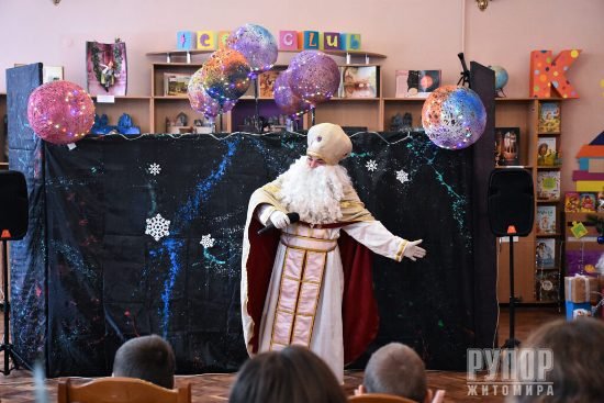 У межах заходу відбулася новорічна інтерактивна вистава-гра від Житомирського академічного обласного театру ляльок «Всесвіт зоряний чекає, доки свято завітає. Діти також отримали солодкі подарунки та набори книжок від запрошеного почесного гостя.