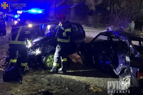 13 січня о 20:18 до Служби порятунку «101» надійшло повідомлення про те, що терміново необхідна допомога рятувальників у ліквідації наслідків дорожньо-транспортної пригоди, що сталася на одній із вулиць м. Житомир. На місці пригоди з’ясувалося, що внаслідок зіткнення двох легковиків Opel Meriva та ВАЗ-2199 водій і пасажир останнього отримали травми різного ступеню важкості та опинилися заблокованими всередині транспортного засобу. За допомогою гідравлічного розжиму рятувальники зняли заблоковані двері ВАЗу, деблокували двох травмованих громадян та передали їх медиків, які вже перебували на місці пригоди. Обох постраждалих було госпіталізовано до лікувального закладу обласного центру. До проведення аварійно-рятувальних робіт залучалося 5 чоловік особового складу та 1 одиниця спецтехніки. Наразі остаточні обставини даної дорожньо-транспортної пригоди встановлюються правоохоронцями.