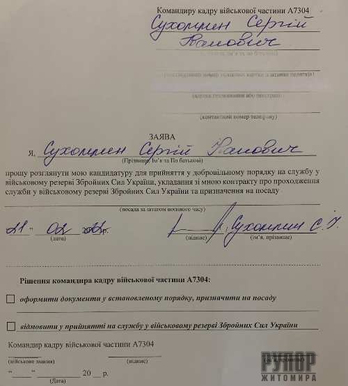 Житомирський міський голова Сергій Сухомлин подав заяву на вступ до територіальної оборони.