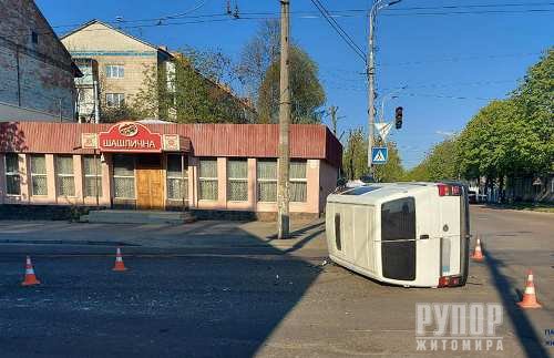 У Житомирі під час ДТП на перехресті вулиць Покровської та Домбровського перекинувся мікроавтобус