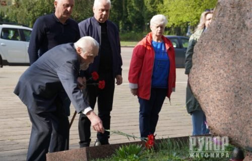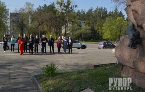 Сьогодні, 11 квітня, Україна відзначає Міжнародний день визволення в’язнів фашистських концтаборів. Так, меморіальний захід відбувся і у Житомирі, до якого долучилися представники Житомирської обласної військової адміністрації, Житомирської обласної ради, громадськість та медіа. Учасники заходу встановили лампадки та поклали квіти до пам’ятного знаку «Жертвам фашизму» та хвилиною мовчання вшанували жертв фашистських концентраційних таборів. Довідково. Памятний знак «Жертвам фашизму» встановлений 25 грудня 1968 року На місці розташування колишнього німецького концентраційного табору «Шталаг 358». Табір розмістили на базі колишніх Врангелівських казарм. По всьому периметру в декілька рядів обнесений колючим дротом, по якому проходив струм. Чотири цегляні будівлі заселили 100 тисячами солдатів і командирів. Часом кількість людей сягала такої кількості, що не можливо було навіть лягти на землю. Пізніше, за три тижні в урочищі Петрівське з’явився крематорій. Щодня полонені займалися тяжкими роботами. Зморених конвоїри застрелювали. Серед полонених була висока смертність також і через голод, так як на одну особу виділялося 100 грамів проса та пів літра води. Одночасно в таких умовах спалахнули епідемії смертельних хвороб. Табір проіснував до жовтня—листопада 1943 року, коли місто Житомир було звільнено від німецьких загарбників. За цей час від голоду, тяжкої праці та розстрілів загинуло понад 110 тисяч осіб.