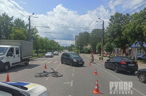 Подія сталася 2 червня по вулиці Чуднівській. На місці працювала слідчо-оперативна група Житомирського райуправління. Попередньо, близько 13:00 відбулося зіткнення автомобіля «Opel», під керуванням 27-річного житомирянина, та велосипедиста, який у той час перетинав автошлях. У результаті ДТП керманич двоколісника, 40-річний містянин, отримав травми та був доставлений до медичного закладу. Нині слідчими Житомирського районного управління поліції розпочато кримінальне провадження за ч. 1 ст. 286 (Порушення правил безпеки дорожнього руху або експлуатації транспорту особами, які керують транспортними засобами) ККУ. Триває подальше досудове розслідування.