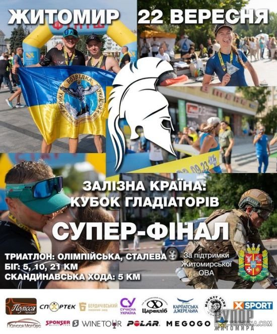 Відповідне рішення сьогодні прийняли на засіданні виконавчого комітету міської ради. У межах заходу 22 вересня відбудуться змагання з триатлону та бігу на 5, 10 та 21 км. «Основною метою є збір коштів на обладнання Житомирського військового шпиталю. Він один із центрових в Україні, і наші Герої потребують нашої допомоги. У військові часи ми мусимо думати не тільки про близьких, але й про тих, хто став на наш захист, та ветеранів, які вже чимось пожертвували заради нашої Перемоги», – говорить триатлоністка Юлія Єлістратова. За її словами захід проведуть для аматорів, тому кожен охочий може спробувати свої сили, а після завершення змагань планують провести концерт та благодійний аукціон.