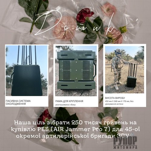 14 листопада о 18:00 в Житомирському обласному українському музично-драматичному театрі імені Івана Кочерги відбудеться квітковий благодійний бал «Дотик». Мета — зібрати 250 тисяч гривень на придбання РЕБ для 45-ої артилерійської бригади ЗСУ. Захід організовує Пластовий молодіжний центр Житомирської міської ради. Зробити вклад у Перемогу під мелодію вальсу можен кожен. Вартість квитка — донат від 500 грн за одного гостя або 800 грн за пару. Всі зібрані кошти з квитків, аукціону та лотереї будуть спрямовані на купівлю РЕБ. Покликання на банку збору. «Дрес-код вечора покликаний підкреслити атмосферу, де кожен гість стає частиною вишуканості та елегантності, тому підбирайте вечірнє вбрання і до зустрічі 14 листопада», — зазначають пластуни, дякуючи кожному, хто не залишається осторонь. Зробіть дотик до доброї справи.