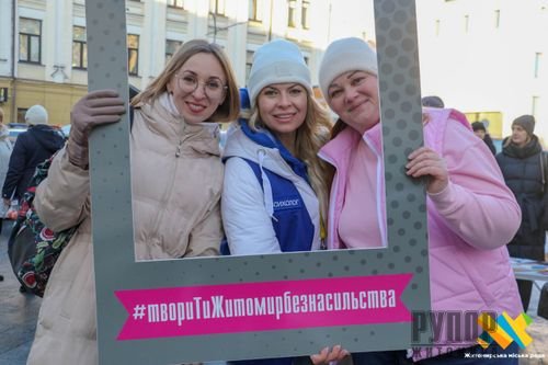 У Житомирі стартувала вулична акція «Спільно твориТИ Житомир без насильства». Мета цієї ініціативи — привернути увагу громадськості до проблем насильства у родині та суспільстві, жорстокого поводження з дітьми й протидії торгівлі людьми.