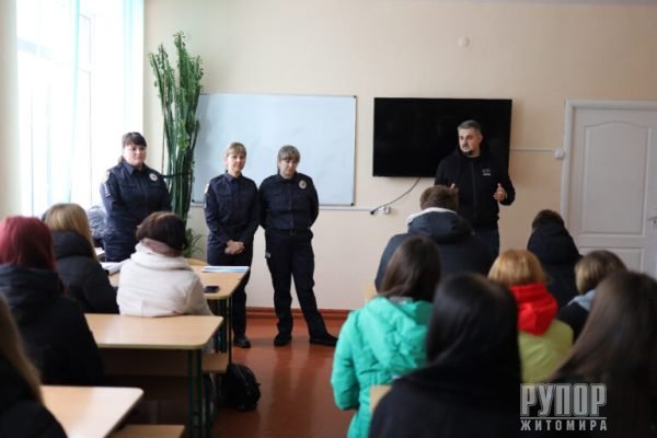 Працівники ювенальної превенції Управління превентивної діяльності ГУНП області та Житомирського райуправління поліції роз’яснили студентам правові наслідки за злочини проти держави. Особливу увагу приділили тяжким правопорушенням, таким як державна зрада та диверсія. Поліцейські наголосили, що навіть необдумані дії можуть мати серйозні правові наслідки.