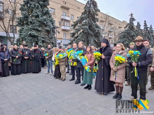 22 січня у Житомирі відбулися заходи з нагоди Дня Соборності України. Громадськість міста зібралася біля Пам’ятного знака «Захисникам України у війні з російським агресором», щоб віддати шану всім, хто пожертвував своїм життям за Соборність та незалежність нашої держави. Учасники віче долучилися до загальнонаціональної хвилини мовчання та поклали квіти до пам’ятної композиції. Квіти також поклали до місць, які нагадують про боротьбу за свободу та єдність України. Зокрема: • до пам’ятного знака Героям Небесної Сотні біля Михайлівського кафедрального собору; • до пам’ятника Івану Огієнку; • до пам’ятного знака Героям Небесної Сотні на майдані імені С. П. Корольова; • до пам’ятної дошки М. С. Грушевському; • до могил учасників національних визвольних змагань Миколи Сціборського та Омеляна Сеника; • до пам’ятника Олегу Ольжичу. Довідково: 22 січня 1919 року на Софійському майдані в Києві відбулося проголошення Акта злуки (об'єднання) Української Народної Республіки і Західно-Української Народної Республіки в єдину незалежну державу. Цей день став символом українського державотворення, втілив соборницькі прагнення українців щодо консолідації в одній державі. Для України соборність – це об’єднання навколо української державності й ідентичності. Ідея територіальної цілісності країни поєднується з ідеями духовної згуртованості. Соборність невіддільна від державності, суверенітету й незалежності нації – фундаменту для побудови демократичної держави. В умовах сучасної російсько-української війни соборність набуває більшого символізму, адже нині українцям потрібно об’єднатися заради майбутнього. Нагадуємо, що сьогодні об 11:00 на вулиці Михайлівській розпочнеться патріотична акція «Вплети оберіг у сітку єднання», до якої може долучитися кожен охочий.