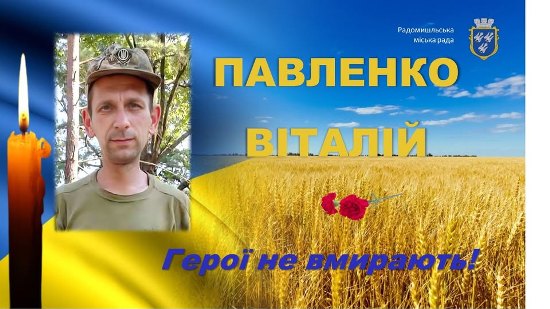 Знов сумна звістка оповила Радомишльську громаду. Радомишльська міська рада з глибоким сумом повідомляє, що 15 травня 2025 року, в результаті артилерійського обстрілу противником українських позицій загинув наш захисник, Віталій ПАВЛЕНКО, 14.04.1980 року народження. Життя Героя обірвалось поблизу населеного пункту Надіївка, Покровського району Донецької області. "Церемонія прощання з Героєм-захисником відбудеться 20 травня 2025 року. - 10:00 – заупокійне богослужіння за Українським Воїном у Свято-Миколаївському храмі; - 11:00 – прощання на Меморіалі Слави. Віддаймо шану славному землякові! Пам’ять, честь і слава навіки!" - йдеться у повідомленні.