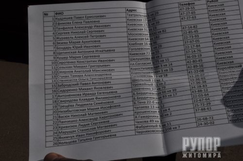 В акции участвовали: Макаров Владимир, Антон Гладышевский, «Союз десантников», ЖООО «МІР», «Репортер Житомира», «20 хвилин», Савицкая Вера, Волынец Наталья, Демчик Евгений, Федирко Андрей и другие члены житомирского исполкома.