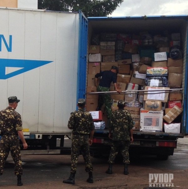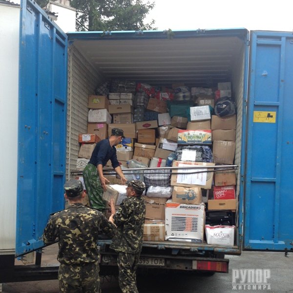 У понеділок до Житомира благополучно повернулась машина, яка відвезла на Схід понад 35 тон вантажів для військових 95-ої аеромобільної бригади. Житомиряни, що супроводжували вантаж розповідають, що цього разу зупинились за декілька сотень кілометрів від місця дислокації наших військових і майже добу чекали можливості розвантажити привезені воду, продукти та особисті передачі для військових від їх рідних. Серед вантажів були військове спорядження та захисні сітки для БТРів. Незважаючи на те, що тривало оголошене Президентом України перемир’я, збройні найманці і терористи постійно його порушували і небезпека для руху вантажівки була навіть більшою, ніж під час перевезення семи попередніх вантажів. Разом із сміливцями, що відвезли цього тижня вантаж на Схід, до Житомира у понеділок приїхали у відпустку восьмеро наших військових. Також допомогли військовим доправити на ремонт 2 генератори для вироблення електроенергії. Загалом за ініціативи Першого заступника Адміністрації Президента України Геннадія Зубка та першого заступника Житомирського міського голови Сергія Сухомлина житомиряни зібрали для наших військових майже 180 тонн вантажів. Зараз готується на п’ятницю чергове відправлення вантажу вагою 20 тон. Незважаючи на те, що цього разу відвезли 15 тон води, вода постійно потрібна. Тому планується позачергова машина, яка повезе переважно воду. Мобілізація житомирян на підтримку 95-ої бригади триває. Наші воїни справжні герої. Вони захищають кожного з нас і бережуть наш мир і спокій. Наш обов’язок підтримати наших захисників – 95-у аеромобільну бригаду. Контакти для надання допомоги та підтримки: Адреса: м. Житомир, вул. Бородія, 32/98 Тел. (0412) 465 754