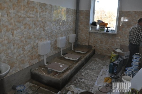 В школе №33, хотел бы отметить, уже почти завершены работы по ремонту санузлов.