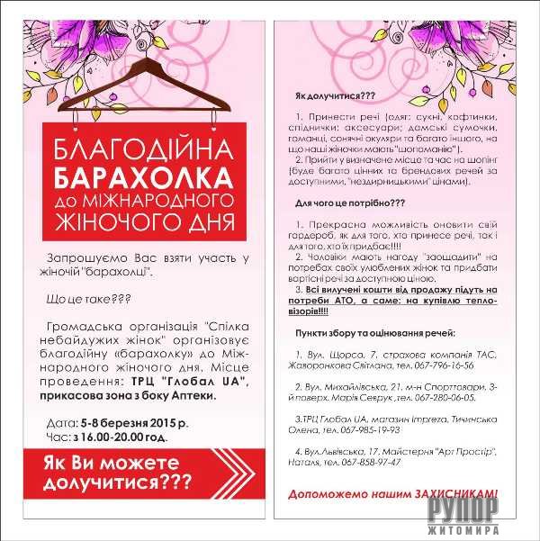 У Житомирі відбудеться благодійна жіноча «барахолка»