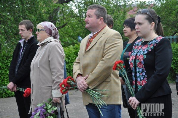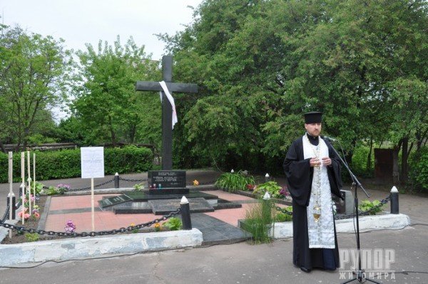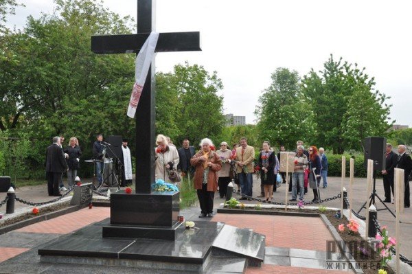17 травня, в День вшанування жертв політичних репресій, у Житомирі відбувся мітинг-реквієм. Біля пам’ятного знаку жертвам політичних репресій 1937-1938 років вшановували пам'ять усіх, хто став жертвою режиму. Терор знищував іншомислення, свободу слова, віру в своє майбутнє. Попри величезні втрати, наш народ вистояв і зумів отримати незалежність. І тепер ми знову змушені боротися за свободу і територіальну цілісність нашої держави. Немає сумнівів, що наш ворог приречений на поразку. Ми захистимо себе, свій європейський вибір, право гідно жити. Це право Україна вже відвоювала на Майдані під час Революції Гідності. Ми вже обрали свій шлях і будемо жити у вільній, демократичній Україні. Олександр Бочковський, заступник міського голови, у своєму виступі зазначив, що тут покояться тіла близько 20 тисяч загиблих багатьох національностей. Громадський діяч Віктор Борковський розповів, що третину репресованих розстріляли в період з серпня 1938 року по вересень 1939 року саме в Житомирі. Біля пам’ятного хреста священики Української Православної Церкви Київського патріархату та Римсько-Католицької Церкви спільно з громадськістю відслужили поминальну панахиду. Звертаючись до присутніх, отці наголосили, що ми не маємо жодного права забувати наших справжніх героїв, які полягли за Українську державу. Представники влади, національних меншин, громадські діячі та житомиряни поклали квіти до пам’ятного хреста.