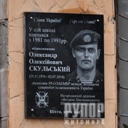 Сьогодні, 20 листопада 2015 року, на базі Житомирської загальноосвітньої школи І-ІІІ ступенів №6 ім. В.Г. Короленка відбулося відкриття меморіальної дошки загиблому підполковнику Олександру Скульському. Олександр Скульський з 23 квітня 2014 року разом із особовим складом частини брав участь у антитерористичній операції в Донецькій області по урегулюванню кризової ситуації в Україні. Загинув 2 липня 2014 під час виконання бойового завдання. Був нагороджений посмертно орденом Богдана Хмельницького III ступеня. Вшанувати пам'ять герою прийшли родичі, знайомі та усі небайдужі.